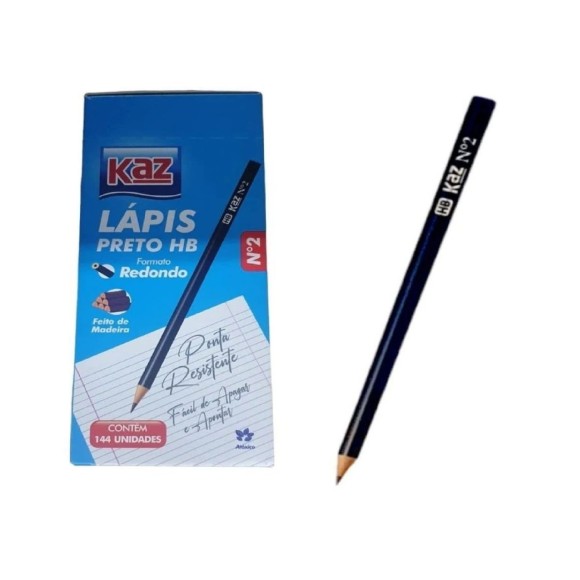 LAPIS PRETO HB MADEIRA REDONDO N°2 - KAZ CX C/144UN