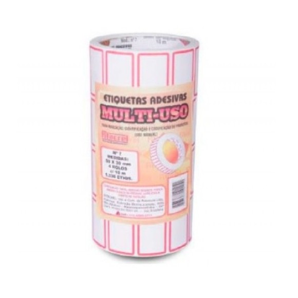 ETIQUETA ADESIVA MULTI-USO *FITACREL N°07 50X30MM PC.4UN BORDA VERM.(1.320ETIQS)